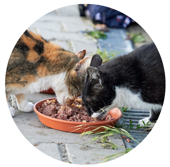 Kastrujeme, abychom zabránili přemnožení koček. | Denně plníme misky kvalitním krmivem a všechny kočičáky pomazlíme. | V případě potřeby ihned zabezpečíme veterinární péči. |