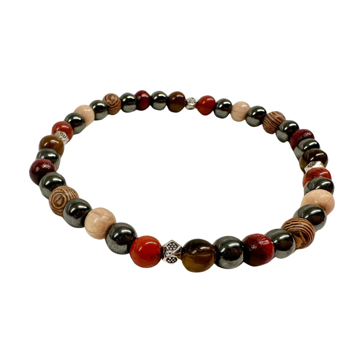 Náramek Unisex - Tygří oko, Jaspis, Hematit a dřevěné korálky