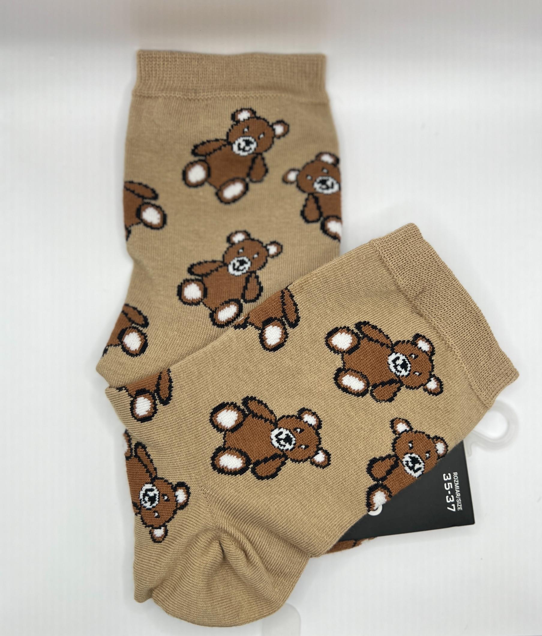 Ponožky světle hnědé barvy s motivem tmavě hnědých medvídků.